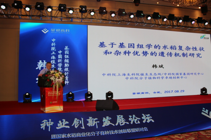 中國科學(xué)院上海植物生理生態(tài)研究所是國內(nèi)植物分子科學(xué)的發(fā)源地之一,集聚了一支具有國際視野和卓越創(chuàng)新能力的科學(xué)家團(tuán)隊,在作物分子設(shè)計育種、現(xiàn)代生物技術(shù)等方面具有國際領(lǐng)先優(yōu)勢。會上,中國科學(xué)院院士、國家基因研究中心主任、上海植生生態(tài)所所長韓斌做主旨演講。
