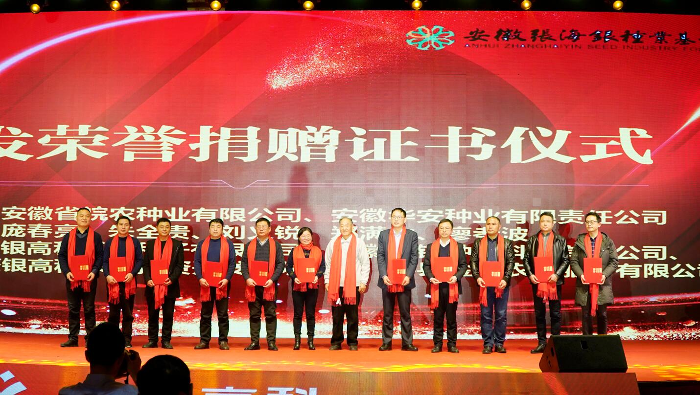 ?? “踐行公益,奉獻愛心”。會上,進行了安徽張海銀種業(yè)基金會頒發(fā)捐贈證書儀式,眾人拾柴火焰高,希望更多的人關(guān)注慈善公益事業(yè),為公益多盡一份力。