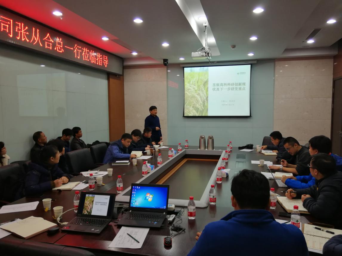 ??? 會上,陳俊仁副主任從基因編輯、基因組、水稻育種等方面對科技中心工作內容、生物技術以及期待對接點進行了介紹。張從合副總介紹了荃銀科研現(xiàn)狀及下一步研發(fā)重點,并提出了科研育種相關需求。