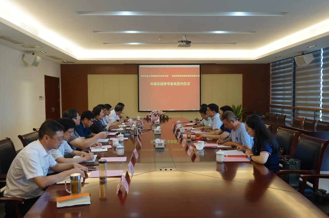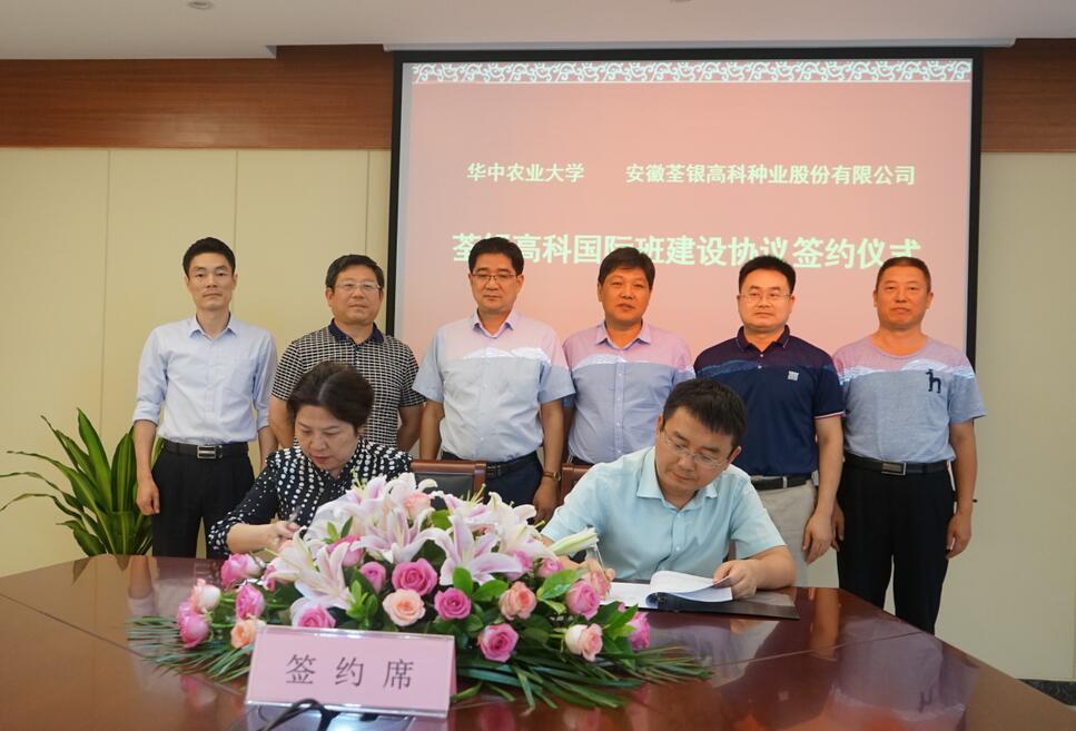 ??? 2019年8月12日,華中農(nóng)業(yè)大學校黨委常委、組織部長李向東,植物科學技術學院黨委書記周雄,植物科學技術學院院長嚴建兵一行蒞臨荃銀高科,雙方簽署荃銀高科國際合作班建設協(xié)議并座談交流,荃銀高科副董事長、總經(jīng)理張琴,副總經(jīng)理、首席技術官、荃銀農(nóng)科院院長張從合,副總經(jīng)理朱全貴等領導熱情接待了李向東常委一行。